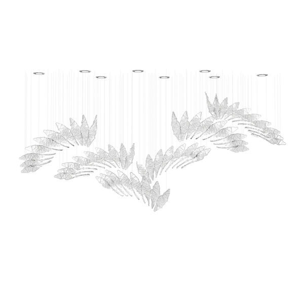 Každý jednotlivý ručně tvarovaný komponent z českého křišťálu je zavěšen na jemných kovových lankách, což vytváří dojem roztaženého křídla ptáků, obývající tyto mrazivé krajiny, které okamžitě upoutají pozornost.